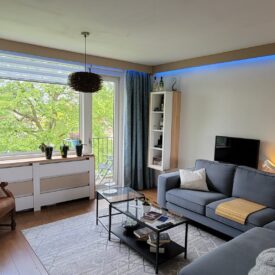 In 2018 ben ik begonnen mijn eigen appartement vorm te geven en ik heb van de gelegenheid gebruikt gemaakt om te experimenteren en allerlei verschillende dingen uit te proberen. Het resultaat is transformatie van een jaren ’60 appartement naar een lichte en moderne woning die vooral ’s avonds en op mooie voor- en najaarsdagen verrast!